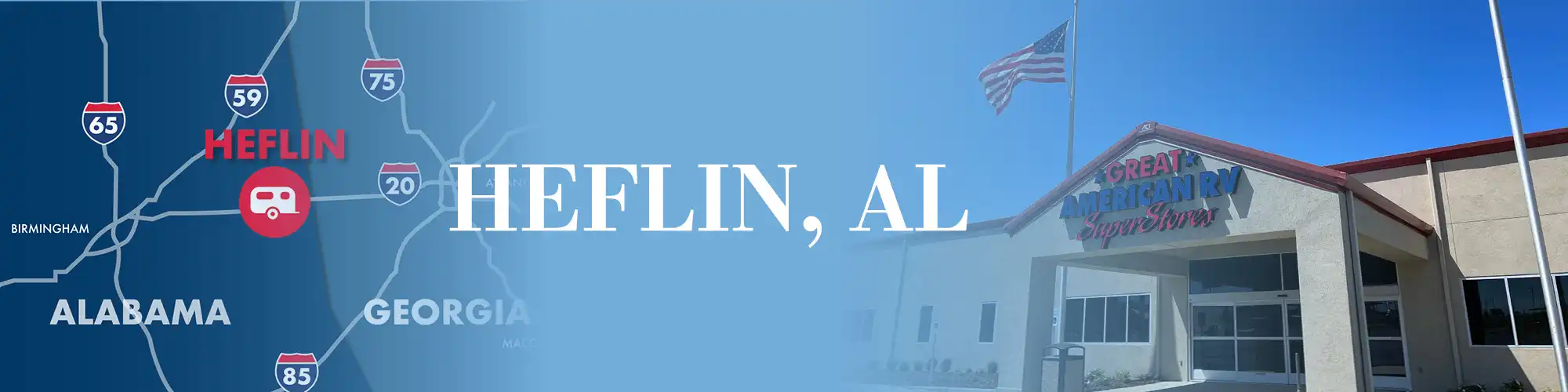 Welcome to Great American RV in Heflin, AL, our newest, state-of-the-art facility which opened in 2022. Conveniently located off I-20, exit 205, just 10 miles from the Georgia border, Great American RV is dedicated to providing superior sales and service to meet all your RV needs. The dealership features 30 service bays staffed by knowledgeable technicians and 6 detail bays, ensuring your RV receives the maintenance and repairs it deserves with efficiency and precision. The Camping Store is fully stocked with a variety of supplies and accessories to enhance your outdoor adventures, ensuring you’re fully equipped for your travels.